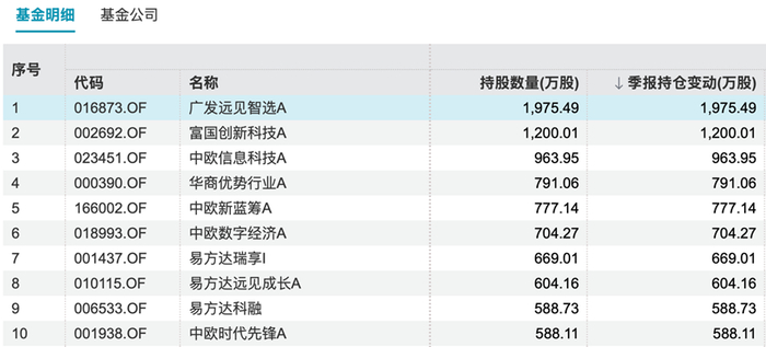 一方面,1季度涨幅接近254%;另一方面,杜厚良管理的中欧信息科技、孙权管理的富国新兴产业等基金大举增持;最终,主动公募重仓季度市值增长超过116亿元,与前述的亨通光电成为单季度增持超过百亿的个股。