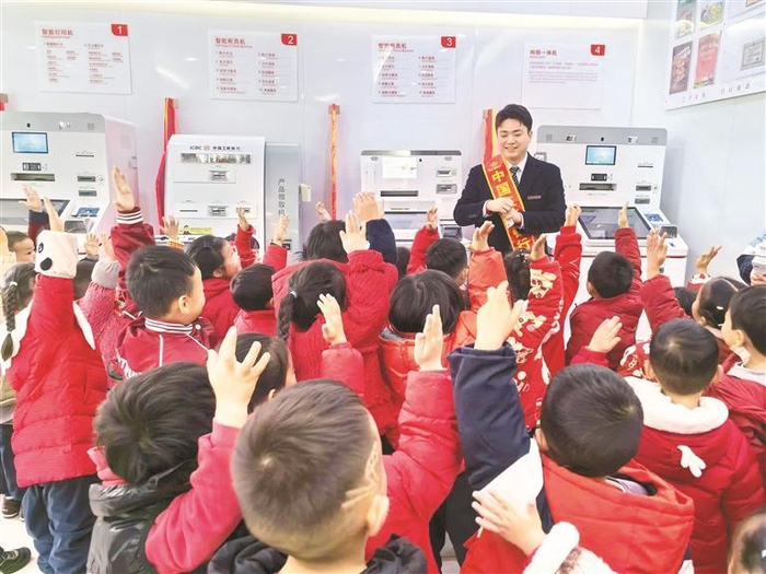 工行贵州省分行邀请小朋友走进网点普及金融知识,传播文明理念。