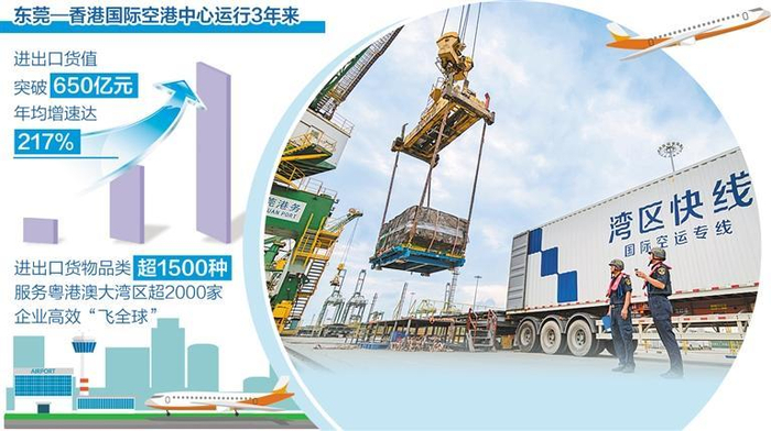 粤港澳大湾区庞大的制造体系,孕育了海量进出口需求。连续14年获评“全球最繁忙货运机场”的香港国际机场,是“湾区制造”通达全球的重要通道。据统计,东莞约80%的空运进出口货物通过香港国际机场集散,而香港国际机场约40%的空运货物来自东莞。随着湾区产业不断升级,高价值产品对空运的需求越来越迫切。粤港两地创造性打造的空港中心,将香港国际机场的核心功能延伸到东莞,实现“一次申报、一次安检、一站装机、直达全球”,作业效率提升20%,为企业节省约30%的综合物流成本。