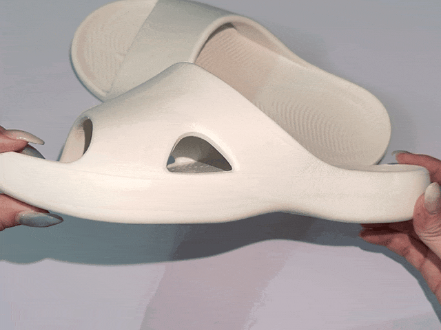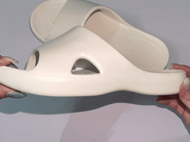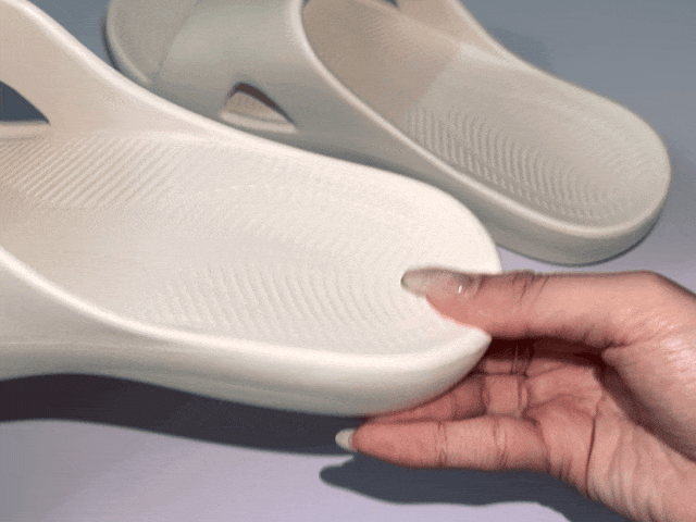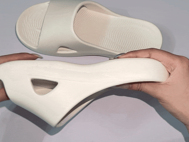 成本虽然高一点,但相较于PVC材质更加环保,做出来的拖鞋是密闭的一体结构,防水耐臭而且很轻便。