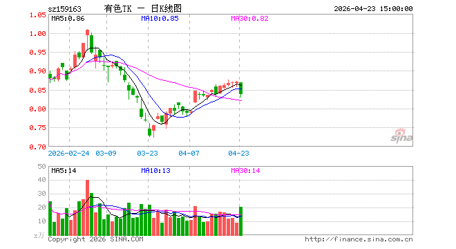 4月23日有色ETF泰康(159163)份额增加100.00万份,最新份额2.37亿份,最新规模1.98亿元