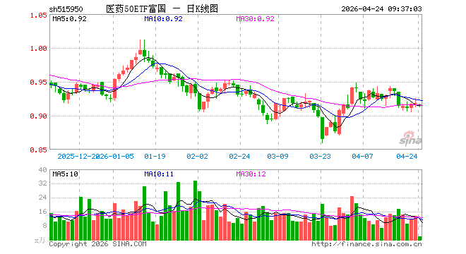 4月24日,医药50ETF富国(515950)开盘跌0.22%,报0.916元。医药50ETF富国(515950)重仓股方面,药明康德开盘跌1.16%,恒瑞医药涨0.18%,迈瑞医疗跌0.49%,联影医疗跌0.33%,新和成涨0.66%,爱尔眼科跌1.54%,科伦药业跌0.15%,信立泰跌0.66%,华东医药涨0.76%,康龙化成跌0.74%。