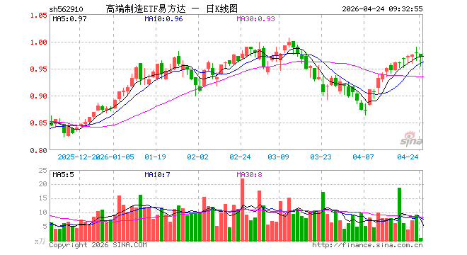 高端制造ETF易方达(562910)业绩比较基准为中证装备产业指数收益率,管理人为易方达基金管理有限公司,基金经理为刘砚芳,成立(2021-12-29)以来回报为-2.50%,近一个月回报为7.25%。