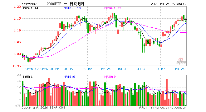 4月24日,国证2000ETF广发(159907)开盘跌0.44%,报1.140元。国证2000ETF广发(159907)重仓股方面,源杰科技开盘跌0.07%,康恩贝跌0.22%,嘉化能源跌0.22%,怡球资源跌0.49%,滨化股份跌0.97%,亚盛集团跌0.69%,城投控股涨0.00%,高新兴跌0.39%,恒邦股份涨0.88%,汉缆股份跌2.86%。