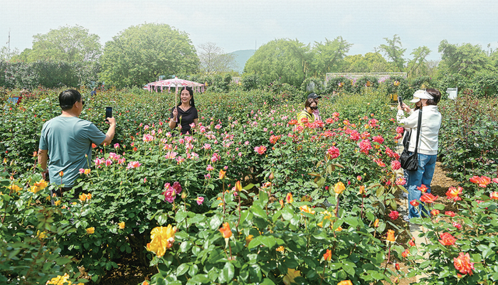 至目前,我市已建成18条月季主题景观大道、千余处特色景观节点,全域栽植月季274万余株,打造2万余米月季花墙、40座月季主题庭院。内河花带连绵蜿蜒,街角花境精巧雅致,各色花艺景观串点成线、连片成景。繁花遍布城市角落,绘就城在园中、路在花中、人在景中的诗意图景。