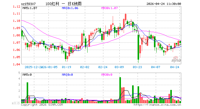4月24日,截止午间收盘,红利低波100ETF博时(159307)跌0.28%,报1.069元,成交额3096.52万元。红利低波100ETF博时(159307)重仓股方面,冀中能源截止午盘跌0.88%,雅戈尔涨1.20%,广汇能源跌8.50%,大秦铁路涨0.19%,中远海控跌0.55%,双汇发展跌0.28%,格力电器涨0.19%,苏泊尔跌0.83%,安徽建工跌3.67%,重庆啤酒涨0.88%。