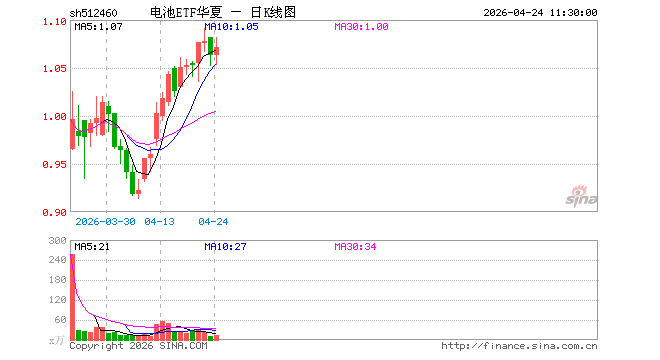 电池ETF华夏(512460)涨0.75%,半日成交额1548.62万元