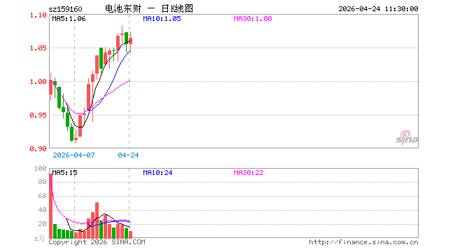 电池ETF东财(159160)涨0.85%,半日成交额1004.68万元