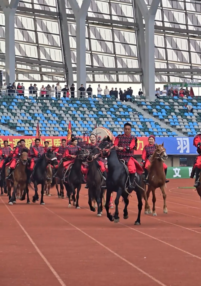 开场前,我们只跟观众说了一遍:马跑的时候不要喊、不要摇旗,避免马儿受惊。