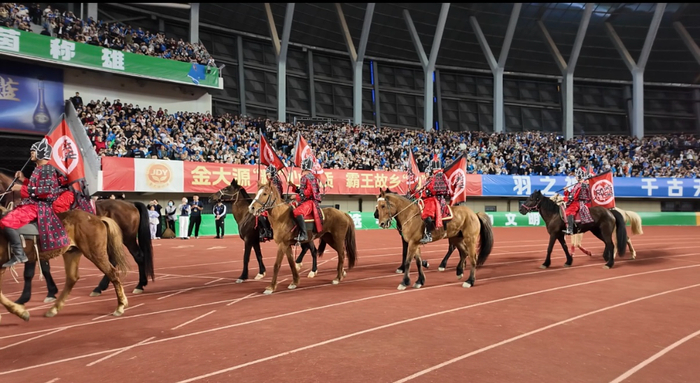 开场前,我们只跟观众说了一遍:马跑的时候不要喊、不要摇旗,避免马儿受惊。