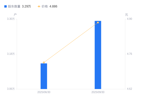 近一年(2024年12月31日至2025年12月31日),宝钢包装A股股东户数从3.29万户,减低至3.21万户,降幅2.68%,区间股价上涨8.23%。