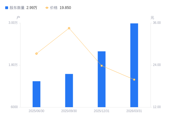 近一年(2025年3月31日至2026年3月31日),荣泰健康A股股东户数从2.01万户,增加至2.99万户,增幅48.80%,区间股价下跌18.53%。
