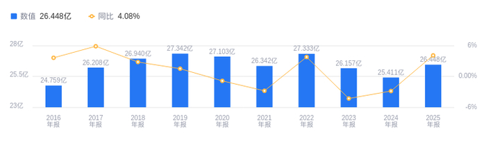 偿债能力方面,2025年公司资产负债率为9.63%,去年同期为10.52%,低于行业平均33.80%,显示出较强的偿债能力。从盈利能力看,2025年毛利率为29.45%,去年同期为27.70%,高于行业平均27.72%,盈利能力良好。