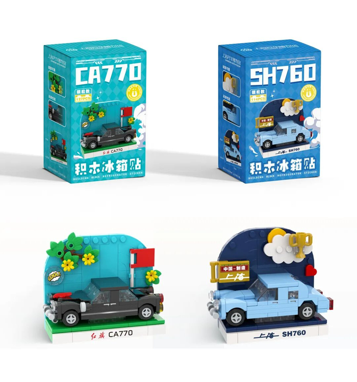 上海汽车博物馆推出的创意汽车积木冰箱贴盲盒,以经典汽车为原型设计,结合了拼搭乐趣与实用功能。两款造型,随机抽取哦~