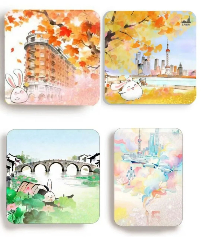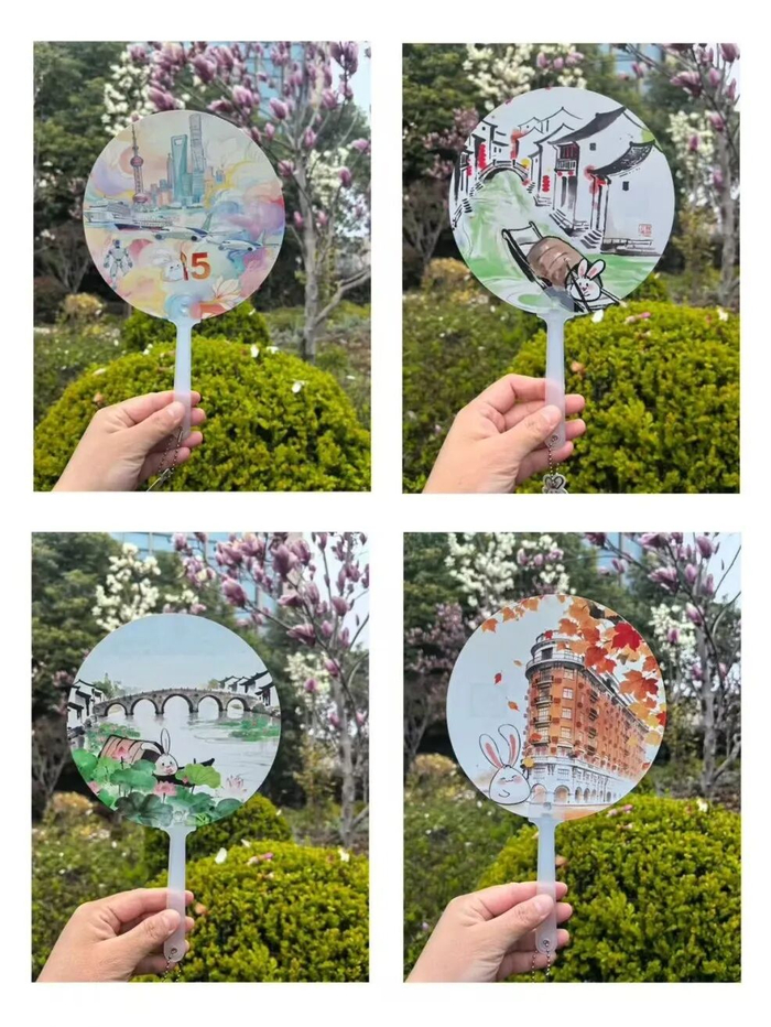 每一份礼包里都有1枚“兔小布”限量版“2026年上海城市四季风光”冰箱贴和1把文创扇子。外滩风光、江南水乡、朱家角镇、武康大楼等四款图案随机发放哦~你心动了么?