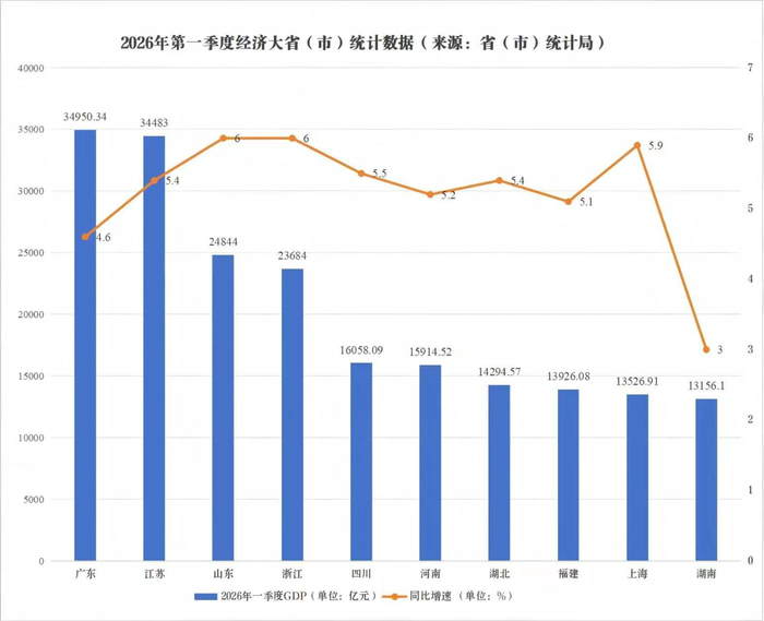 长期以来,经济体量排名前十的省份,贡献了全国六成以上的GDP,它们也被冠以“经济大省”之名。体量越大、能力越大,责任就越大。进入“十五五”开局之年,这些省份的一季度“成绩单”格外引人关注。