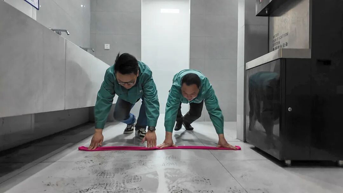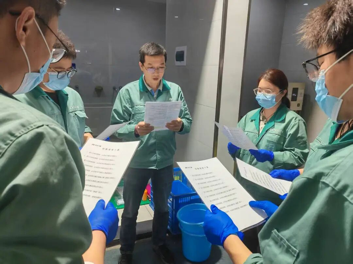 动员结束后,各小组有序领取扫除工具,前往生产车间卫生间开展实战扫除。总经理率先垂范,凝聚践行力量。
