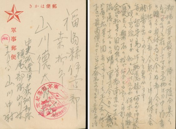 一件是侵华日军中尉山川仪仁于1937年12月18日寄往日本福岛县山川德太郎的战地信件。信中,日军的嚣张气焰清晰可见:“……首都南京,终于在13日被我们攻占了。在17日举行了盛大的军司令官入城式,我们接受了检阅。”