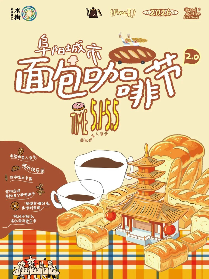双清湾水街五一期间举办“咖啡面包节2.0”,融合精品咖啡、手作面包、文创体验等业态,并设少量市集摊位及宠物友好互动区,营造城市松弛感与青年社交场,提升假期休闲消费体验。