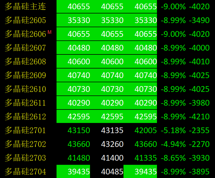 在前期大幅上涨后,近期多晶硅期货定价重回“弱现实”逻辑。4月24日,多晶硅期货主力合约PS2606跌停,报40655元/吨。