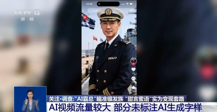 这些AI生成的人物,口中一声声深情告白,让不少老年网友深陷其中。这些频繁刷屏的AI霸总视频,看似暖心陪伴,实为精心设计,凭借极具氛围感的文案,抓住了老年人需要陪伴的心理,并且部分视频并未标注AI生成字样。