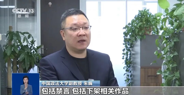 中国政法大学副教授 朱巍:像这样的违规账号的话,应当依法承担相关的责任,包括禁言、下架相关作品和限流等相关措施,严重的话应该永久封禁。