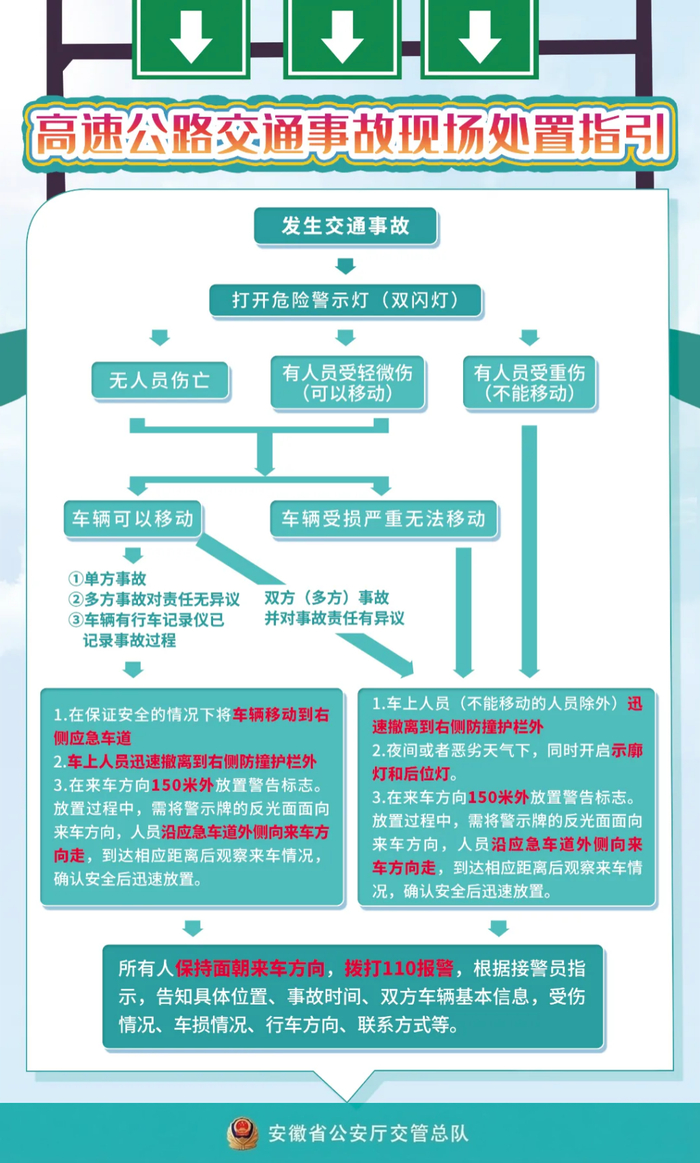 自驾出行应提前安排好出行时间和路线,及时关注有关部门发布的交通路况信息和交通安全提示,杜绝酒后驾驶、超速行驶、分心驾驶等违法行为。