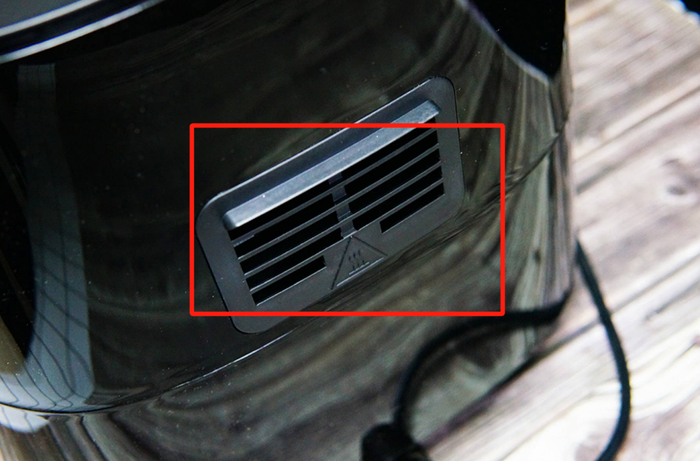 使用空气炸锅时,应将其放置平稳,不能遮挡顶部进风口和背面出风口。
