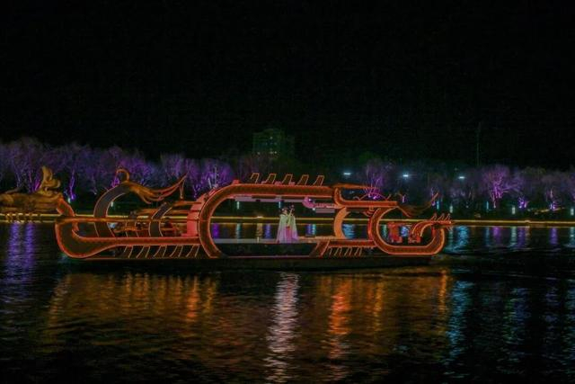 “运上行”水景诗乐中,您还可以看到韩美林大师的匠心造境。韩美林为此次大秀首创“运河龙船”“五福月”“绿水青山”等水上光影雕塑,搭配水幕投影、激光演绎、数字船舱等前沿科技手段,呈现船行戏起、诗乐交融、光影造境、文化互动四大核心体验。两岸光影实景随船而动,水幕之上漕运盛景重现眼前。在船上,观众变为这场运河演出的一部分,千年运河记忆“活起来”。