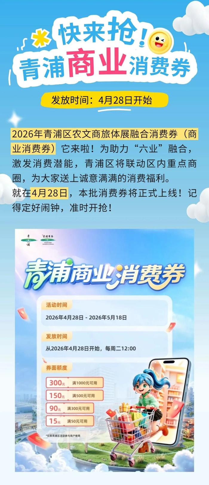 青浦这次是诚意满格——800万融合消费券直接撒,让你每一分钱都花在刀刃上。
