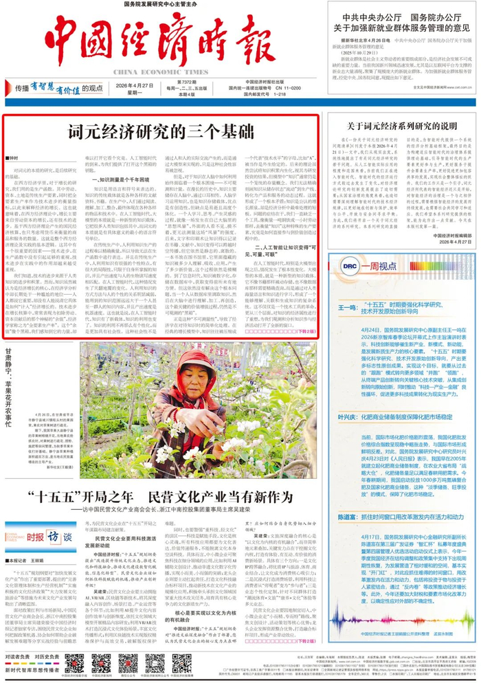 在《一份关于词元经济研究的问题清单》(刊发于本报2026年4月21日)一文中,我们从现实出发,系统性地提出了有关词元经济研究的若干问题。从人工智能实际应用的程度和范围来看,当前我们正在进入智能时代。智能时代的经济运行方式较过去发生了变化,对经济理论研究的创新发展提出了迫切需要;从国家治理的角度来看,也迫切需要深刻理解智能时代的技术经济规律,以更好地在创新与保护、效率与公平、开放与安全间寻求平衡。为此,我们将开启一个关于词元经济的系列研究。本系列研究的直接目的是,为智能时代提供一个系统的经济分析基础框架,最终目的是为构建适应智能时代的治理体系提供理论基础,引导智能时代的生产要素更好参与生产,更好服务于提升全要素生产率,更好促进更加包容共享的发展,实现社会整体福祉的跃升。我们的工作只是一个引子,词元经济所代表的智能经济还只是开始,对智能经济的治理是一个与之相伴的过程,需要根据智能经济的发展而持续发展,也需要社会共同学习和适应。我们希望本系列研究提供的框架,能为此作出一点贡献。今天刊发第一篇。