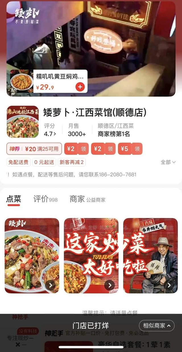 次日晚,冯先生注意到,“矮萝卜·江西菜馆(顺德店)”后厨的视频与“年轻20年·乡下菜馆(顺德店)”高度相似,只是视角不同。