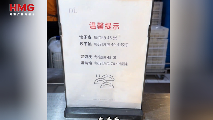 饺子皮包装上显示,该产品为生湿面制品,净含量为360g,一旁的“温馨提示”牌上写着:饺子皮,每包约45张,饺子馅,每斤约包40个饺子;馄饨皮,每包约45张,馄饨馅,每斤约包70个馄饨这样的提示,被网友点赞。