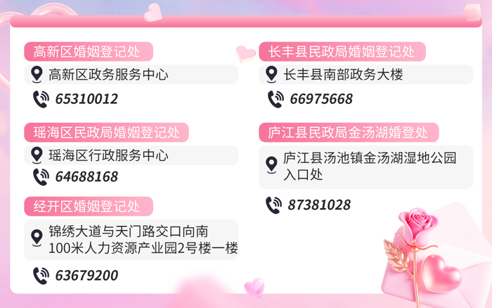 “五一”假期将至,很多准备结婚的新人,都想趁着这个假期办理结婚登记。担心工作日没空、节假日婚姻登记处不上班?不用发愁。为满足大家的领证需求,5月1日上午,瑶海区、经开区、高新区、长丰县、庐江县金汤湖婚姻登记处实行加班服务,方便大家办理结婚登记!