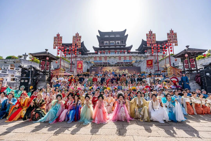 铜官窑国风乐园,全园1000名员工将全员身着汉服上班。你可以加入他们:早晨加入千人方阵打八段锦,下午参与平民汉服走秀,入夜后手持灯笼加入巡游。