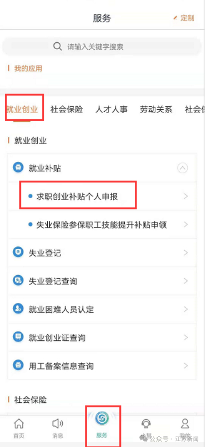 符合补贴条件的毕业生通过“江苏省人社厅网上办事服务大厅” 或“江苏智慧人社”App申请求职创业补贴。毕业生网上申请补贴时,需提供江苏省社会保障卡信息。