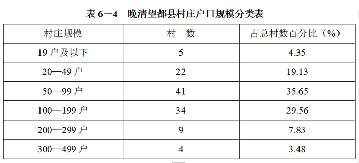 太行山东麓与燕山南麓的冲积平原是华北人口最密集的地带,20世纪学者对之有不少研究。有的著作认为,华北平原的村庄规模较大,晚清时期今河北省境内村落的规模大多超过百户或平均约百户,深、定等地尤多巨村云云。但从以上各平原州县的村落规模来看,19户及以下的小村,数量较少,只青县、定州稍多,各有10%左右,但武清县则达20%以上。99户以下的中小村落,在七州县都占多数——青县85%,栾城80%,定州70%,正定68%,深州、望都均约59%,武清县甚至近90%。百户以上较大的村,深州、望都占40%以上,正定约32%,定州约30%,栾城约20%,青县最少,不到15%。300户以上的大村,各州县都只有少数几村。可以说,在华北平原,百户左右及百户以上的村庄虽不少见,但不占多数。
