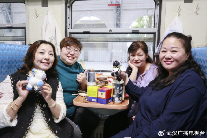 楚天交通广播忠实听众田女士说,这种绿皮车的慢节奏,和方言广播里的烟火气撞在一起,一下子把她拽回了三十年前:“我们年轻那会儿,坐绿皮车就是为了赶路——硬座、大包小包、挤得脚不沾地。那时候车厢里也经常有广播,但都是冷冰冰的机械报站。今天不一样了,6块钱,慢慢晃,窗外的武汉还是那个武汉,可车厢里有了陈哥和乐乐一起咵天,送了我们烧烤虾子和咖啡、热干面玩偶,太欢乐了!希望这样的活动多办,让年轻人也听听正宗的武汉话,知道我们这座城市的故事。”