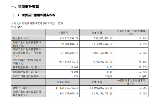 进入2026年第一季度,情况并未根本好转。尽管归母净利润同比大幅收窄97.39%至-4223.98万元,但这一改善主要来自会计处理。公司将部分子公司股权置入服务信托,不再纳入合并报表。剔除这一因素,经营层面并无实质性好转。