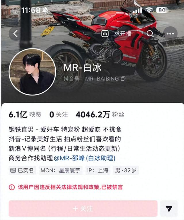 据北京日报消息,目前,白冰的抖音、微博、小红书等账号均已被禁言、禁止关注。