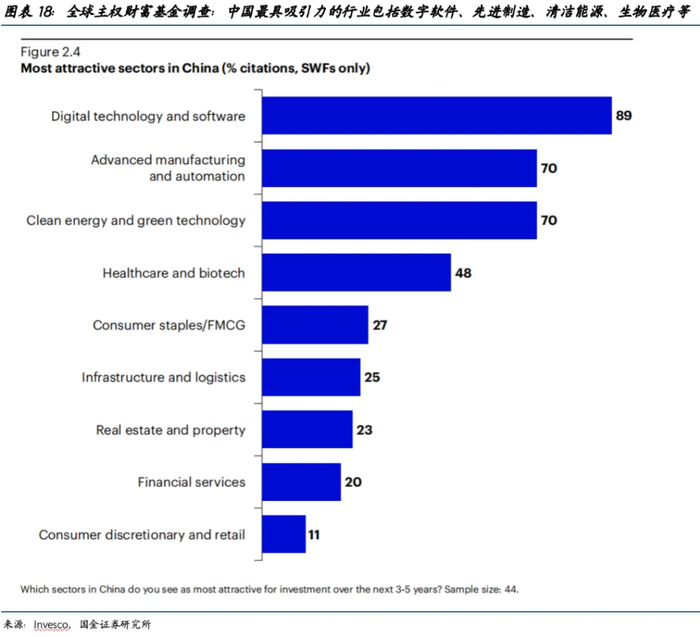 Invesco主权财富基金调查显示,2025年有28%的全球主权财富基金将中国资产列为高优先级投资资产,较2024年上升了8个百分点(图表17)。该调查中记录了一家中东主权基金管理人的观点——“尽管地缘政治紧张局势持续,但中国本土投资回报率诱人、能实现资产多元化,加之中国在关键技术领域领导地位日益凸显,这些都是积极布局的有力理由,我们正将重心转向中国创新驱动型产业。”