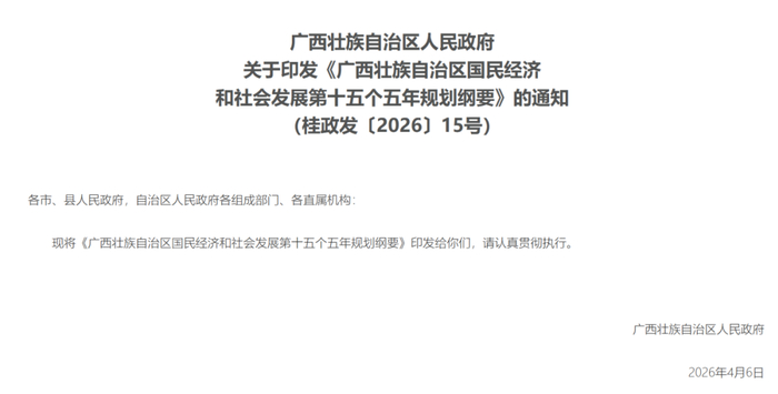 今天(4月28日),《广西壮族自治区国民经济和社会发展第十五个五年规划纲要》正式发布。