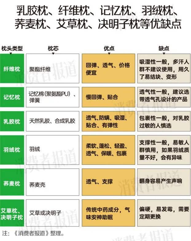 乳胶枕、纤维枕、记忆枕、羽绒枕、荞麦枕……怎么选?