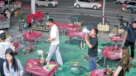 火锅店老板赵国振请顾客离开,“不用结账”的画面。图据新华社客户端
