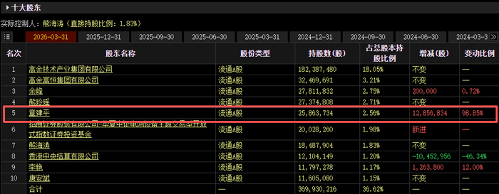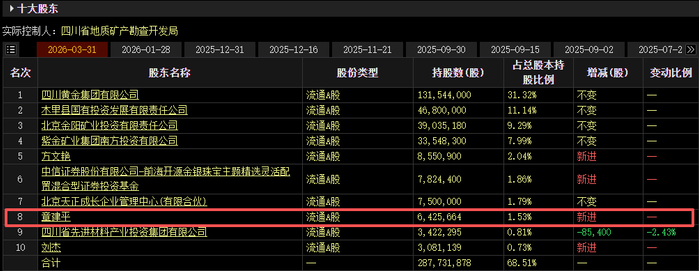 据东材科技一季报显示,章建平位列第五大股东,持有2586.37万股,持股比例2.56%。据此前财报披露,章建平在2025年四季度便已新进东材科技,彼时持股1300.69万股。今年一季度章建平加仓了该股1285.68万股。按今日收盘价计算,其持股市值约9.2亿元。