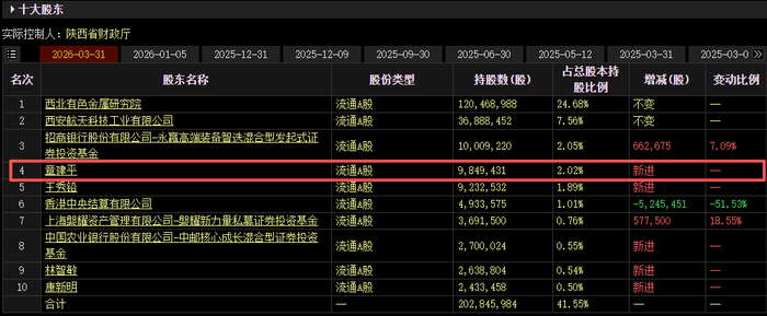 从截至目前披露的一季报数据来看,章建平在2026年一季度末共持有四只个股, 分别为北方稀土、东材科技、西部材料和四川黄金。 其中,除东材科技为加仓外,其余三只均为一季度新进。