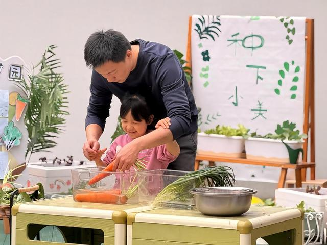 美食做出来,最幸福的时刻在“美食分享会”。每到嘉园一幼的水果时间,每个孩子分到一个白盘和几块水果,没人规定怎么摆,他们却摆出了太阳、小鱼、小花园。一个男孩用蓝莓当花心、黄瓜片当叶子,给作品起名《蓝色星星》。丰台区政府机关幼儿园的“爸爸陪伴日”,孩子们拉着爸爸搭帐篷、做美食,踮起脚尖把第一口喂给爸爸,有爸爸红了眼眶。春日食光创意制作活动结束,丰台五幼的孩子们围坐一圈,你尝尝我的水果拼盘、我尝尝你的小点心,一个男孩把蛋挞掰成两半,大的那半塞给旁边的小姑娘,自己啃着小的,笑得眯起了眼。