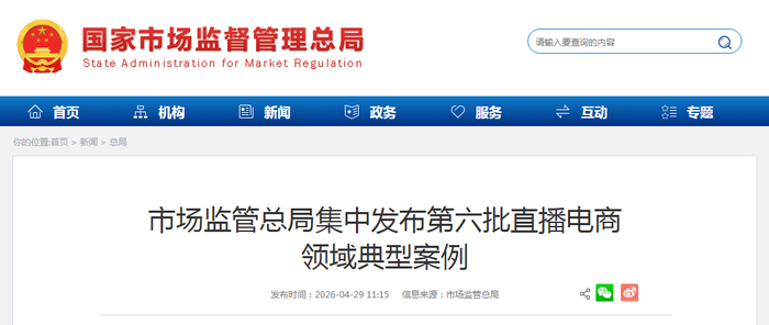 市场监管总局集中发布第六批直播电商领域典型案例