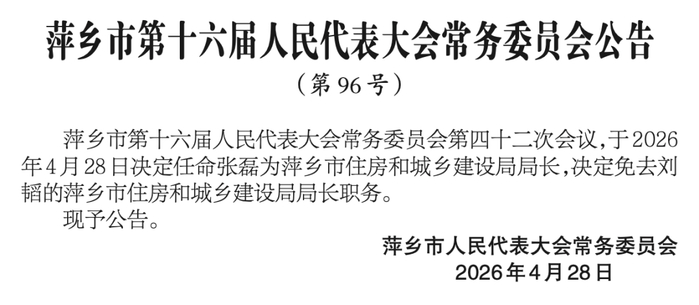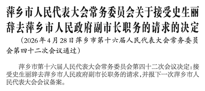 上饶市第五届人民代表大会常务委员会第四十六次会议任命: