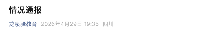 四川成都市龙泉驿区教育局4月29日发布情况通报:
